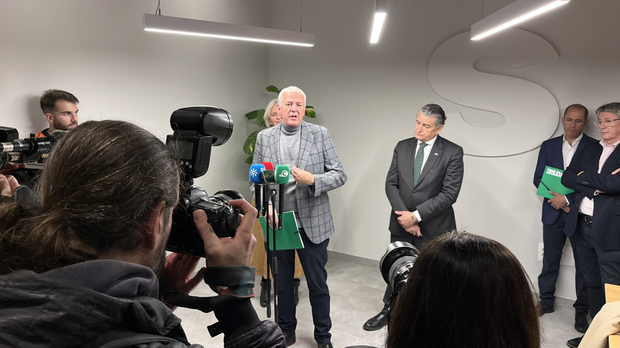 El consejero Antonio Sanz y el resto de autoridades junto a los responsables de SATSE en Andalucía