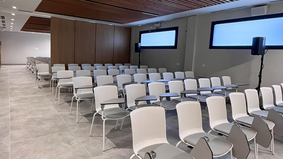 Dispone de áreas de trabajo para el personal permanente, despachos para asesoría jurídica y reuniones, así como una zona específica para formación que incluye dos aulas principales con capacidad total para 100 personas, paneles móviles para configurar el espacio según las necesidades y un box de simulación que facilitará realizar formación práctica para mejorar las habilidades de los profesionales.